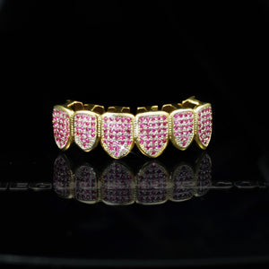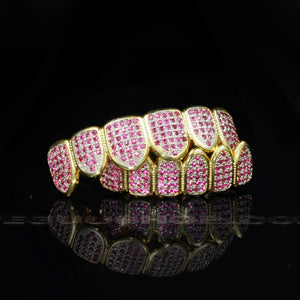 LIMITED STOCK!Gold-Plated Rose Red Micro-inlay CZ Grillz